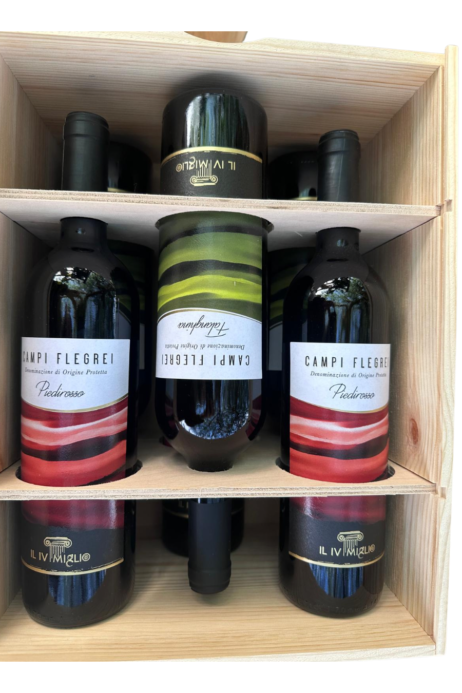 Cassetta Regalo Artigianale in legno con 6 bottiglie di Campi Flegrei DOP